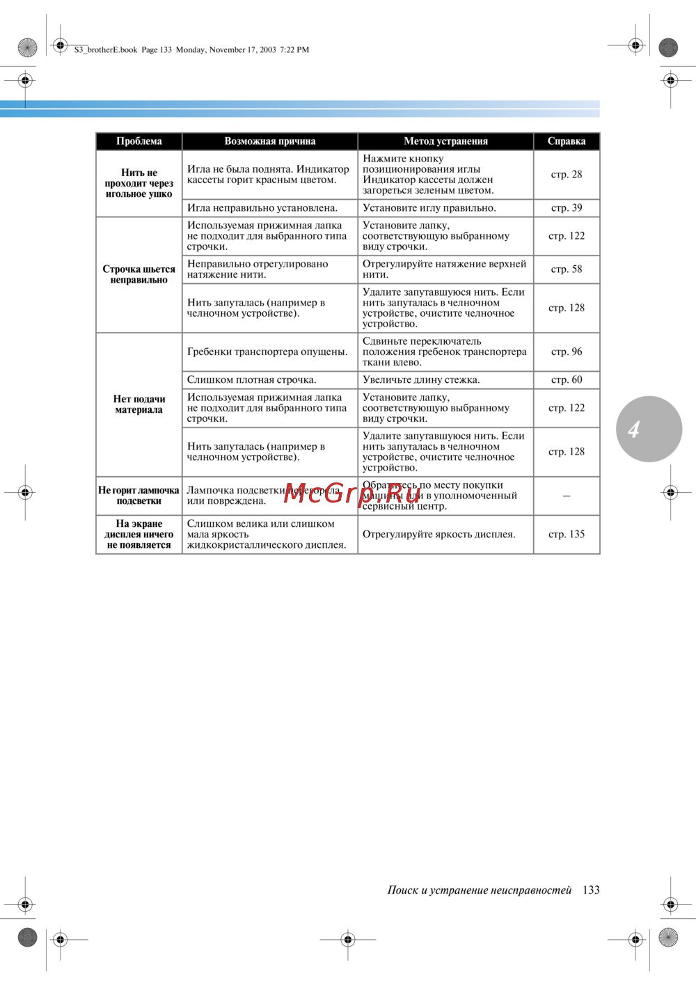 Brother CS-8120 — поиск и устранение неисправностей швейных машин [139/144]