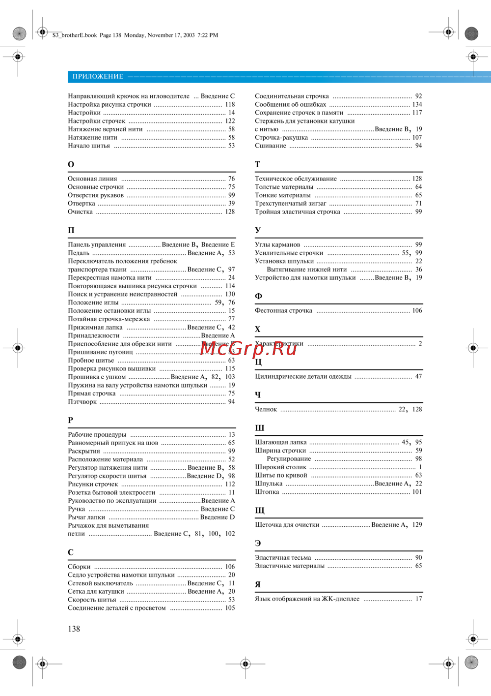 Brother CS-8120 — полное руководство по настройке швейных машин и шитью [144/144]