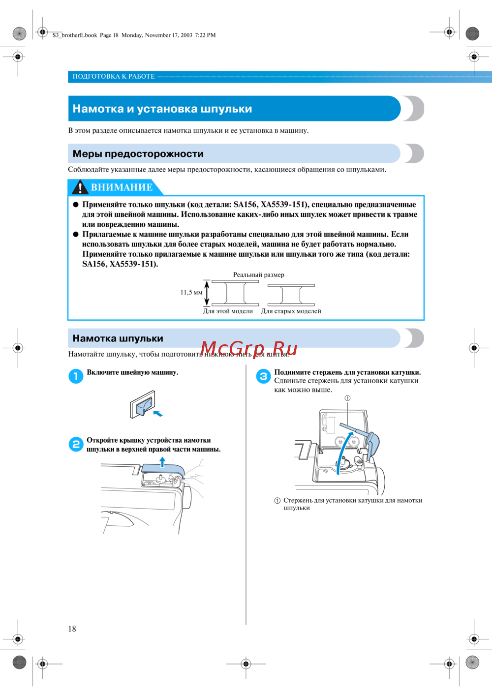 для этой швейной машины. Использование какихIлибо иных шпулек может привести к травме