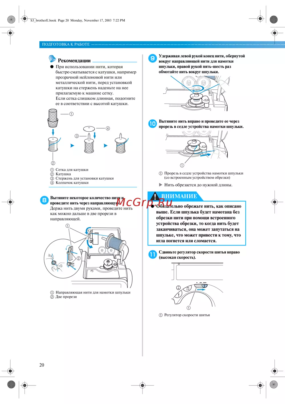 Brother CS-8120 — рекомендации по подготовке к работе с швейными устройствами [26/144]