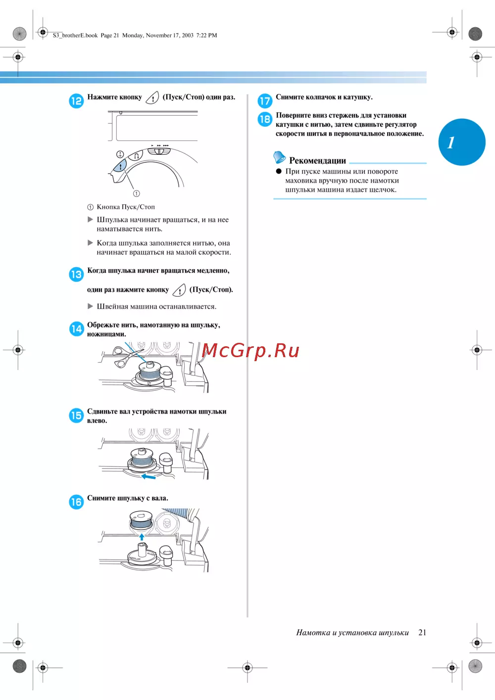 Brother CS-8120 — как правильно намотать и установить шпульку на швейной машине [27/144]