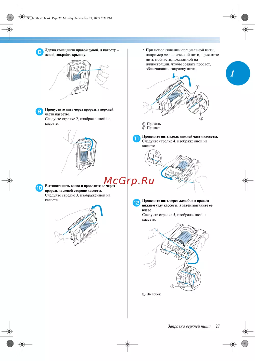 Brother CS-8120 — инструкция по заправке верхней нити для швейных машин [33/144]