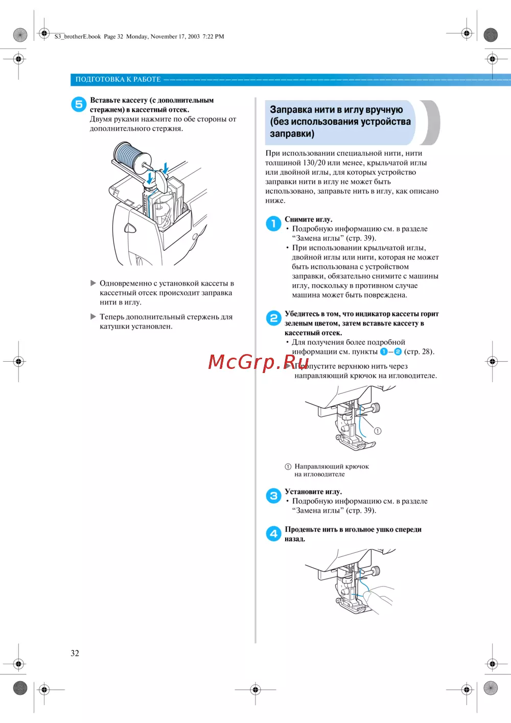Brother CS-8120 — инструкция по заправке нити в иглу и установке кассеты [38/144]