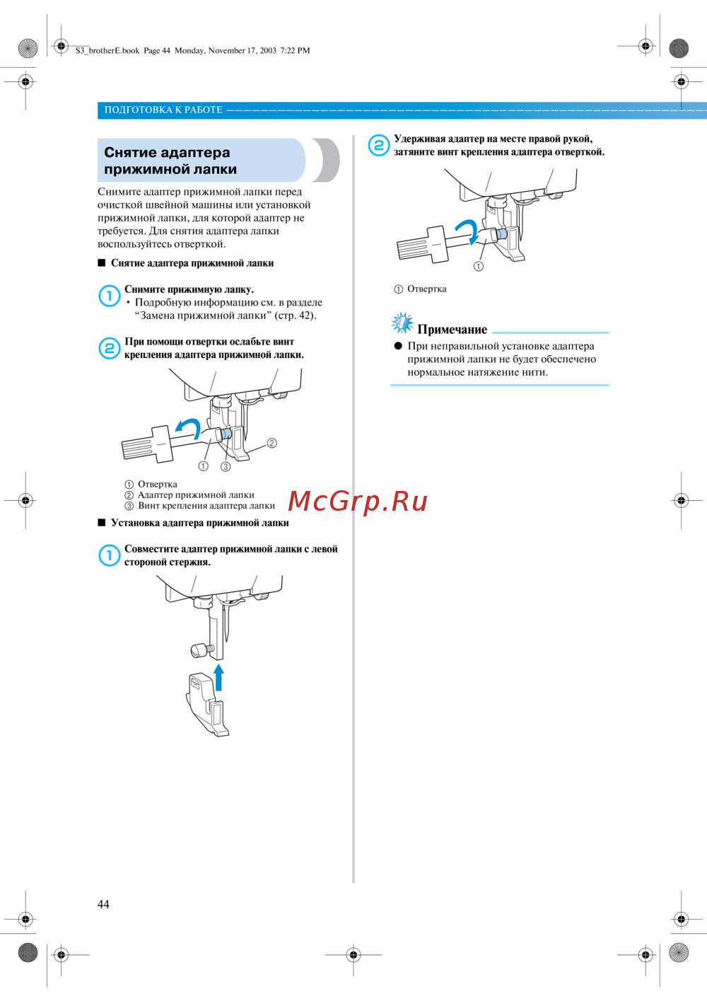 ■ Установка адаптера прижимной лапки