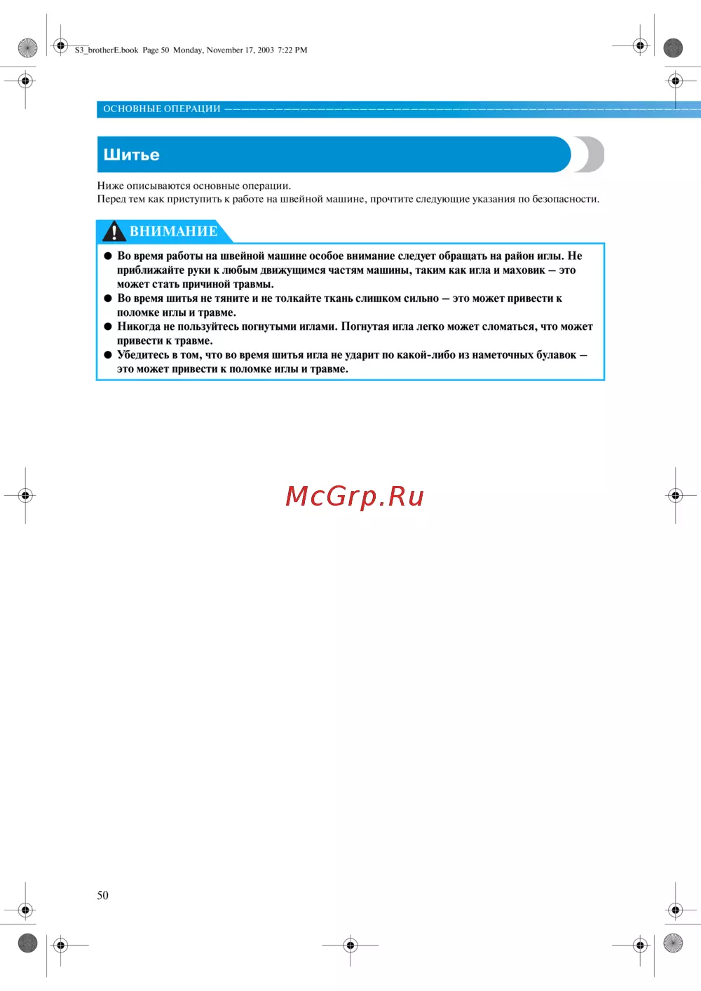Перед тем как приступить к работе на швейной машине, прочтите следующие указания по безопасности.