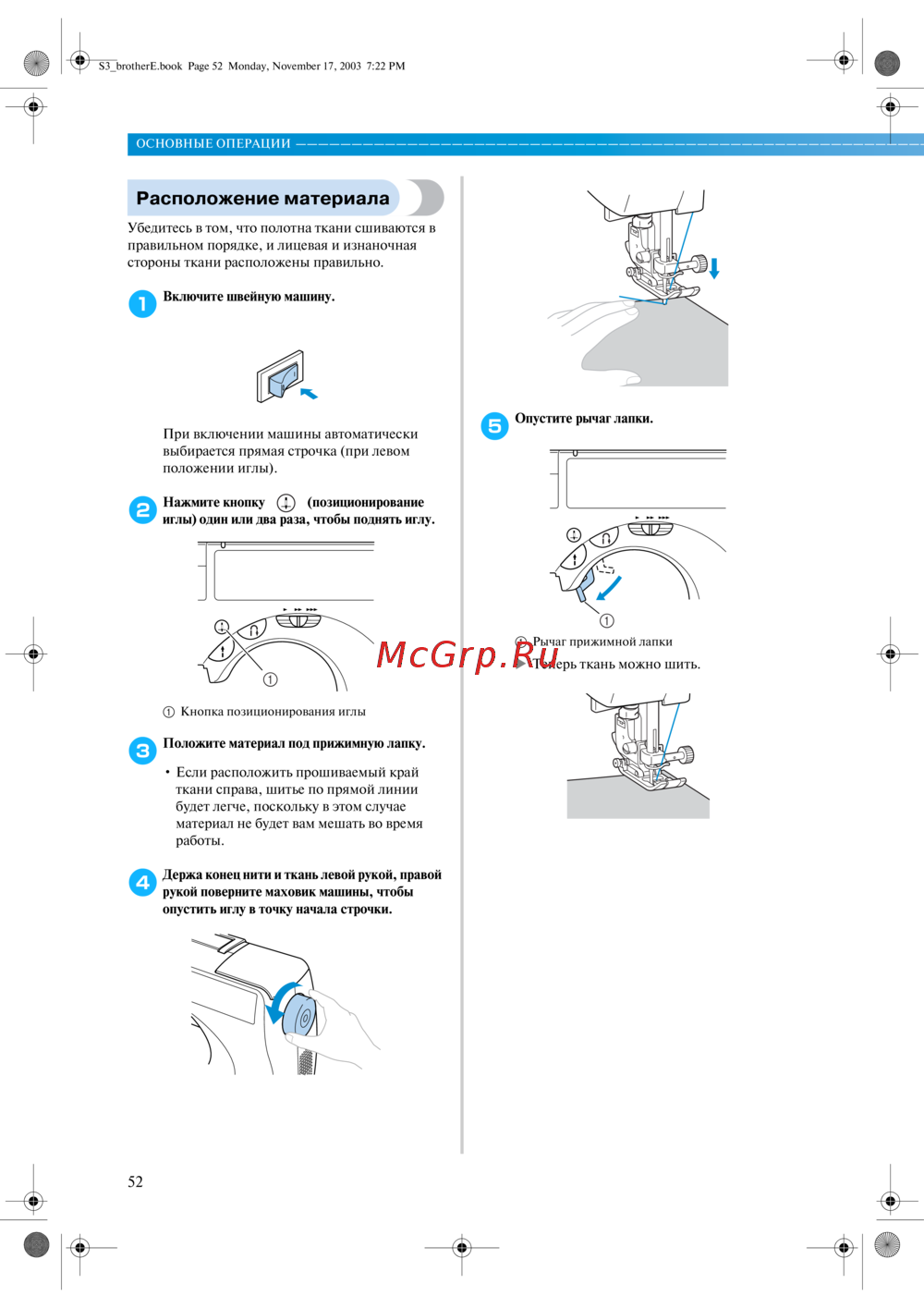 Brother CS-8120 — основные операции шитья: правильное расположение ткани и начало работы [58/144]