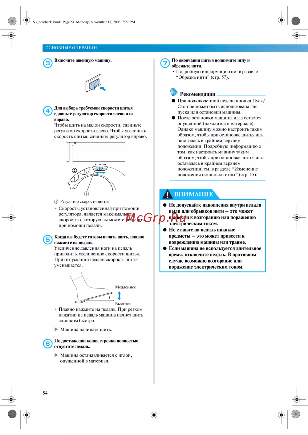 положения остановки иглы” (стр. 15).