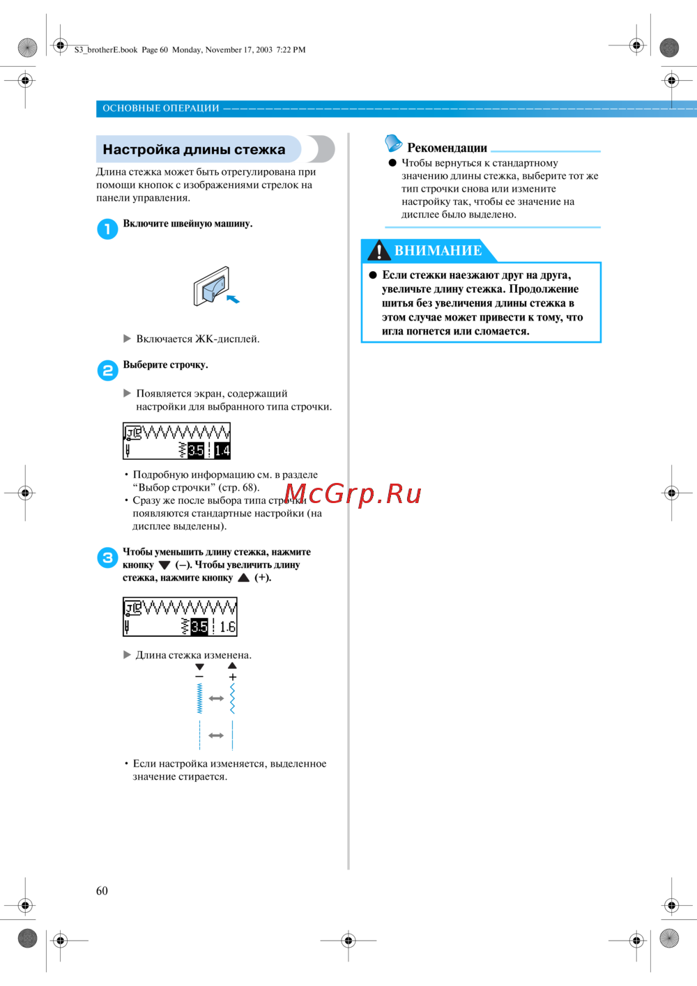 Настройка длины стежка