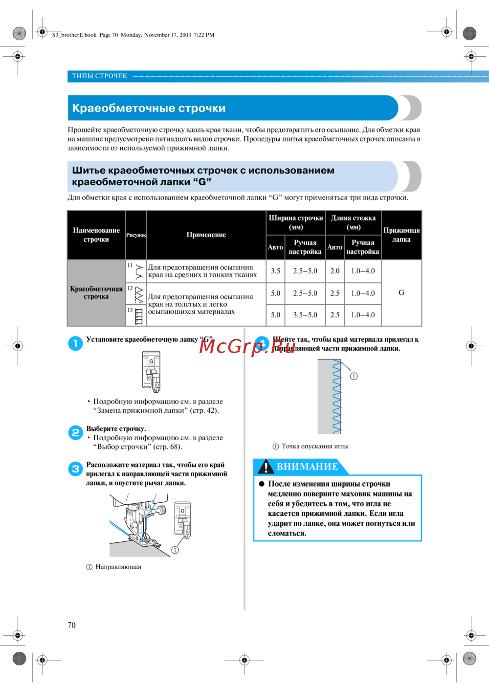 ![Brother CS-8120 [76/144] Шитье краеобметочных строчек с использованием краеобметочной лапки g](/views2/1026033/page76/bg4c.png)