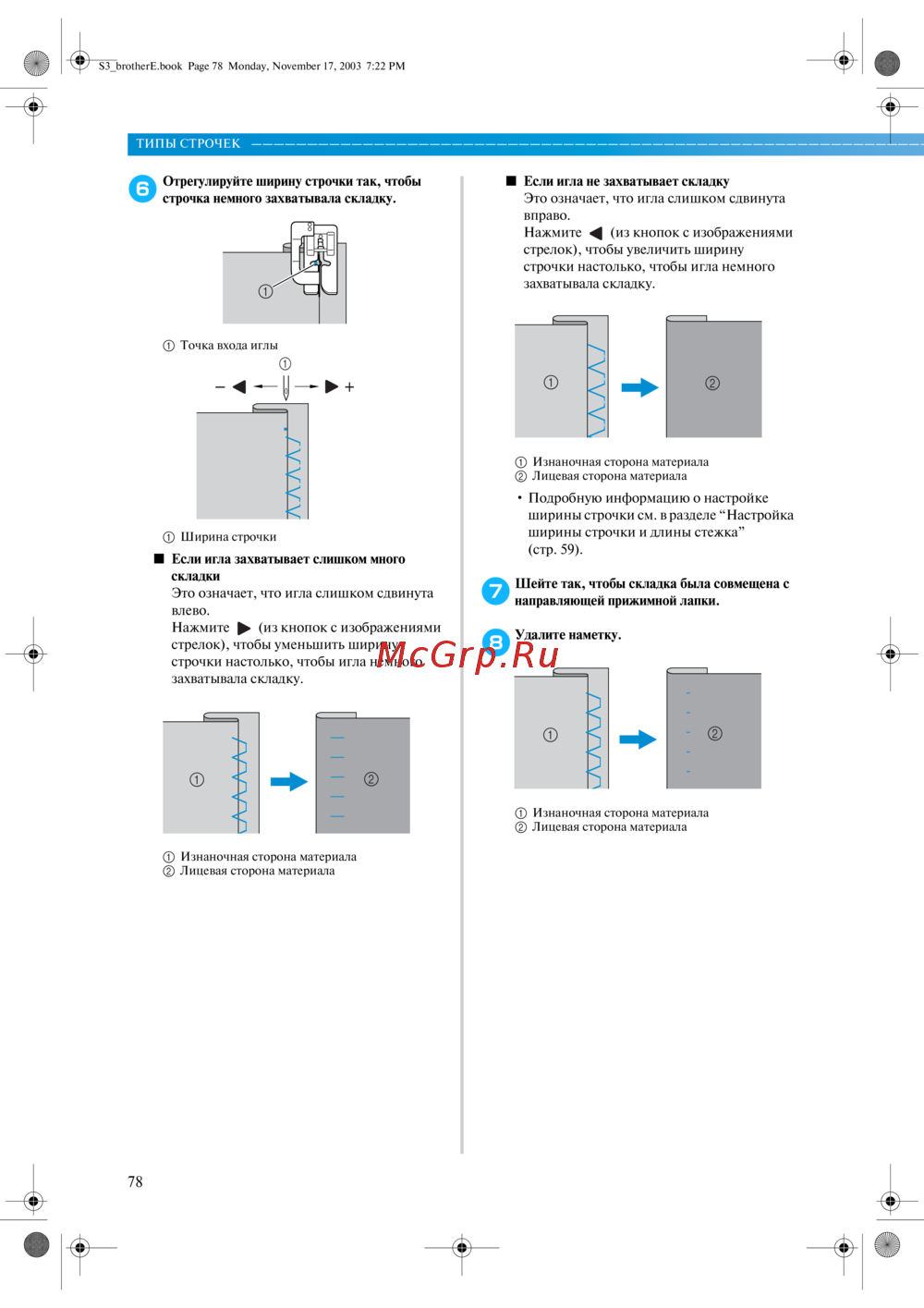- Установите ширину строчки не более 6 0 мм в противном случае игла может погнуться или сломаться p.115
