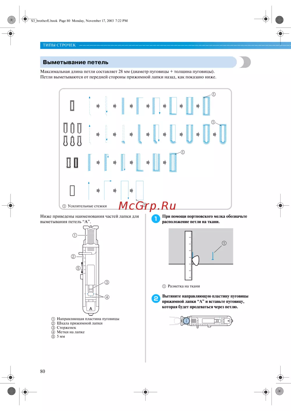Узнайте о выметывании петель, максимальной длине и правильной разметке на ткани. Подробное руководство по использованию прижимной лапки для создания идеальных петель.