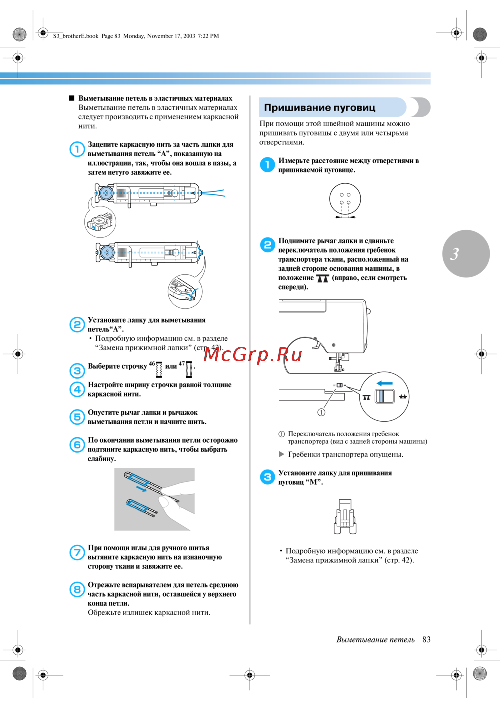 Brother CS-8120 — как правильно выметывать петли и пришивать пуговицы [89/144]