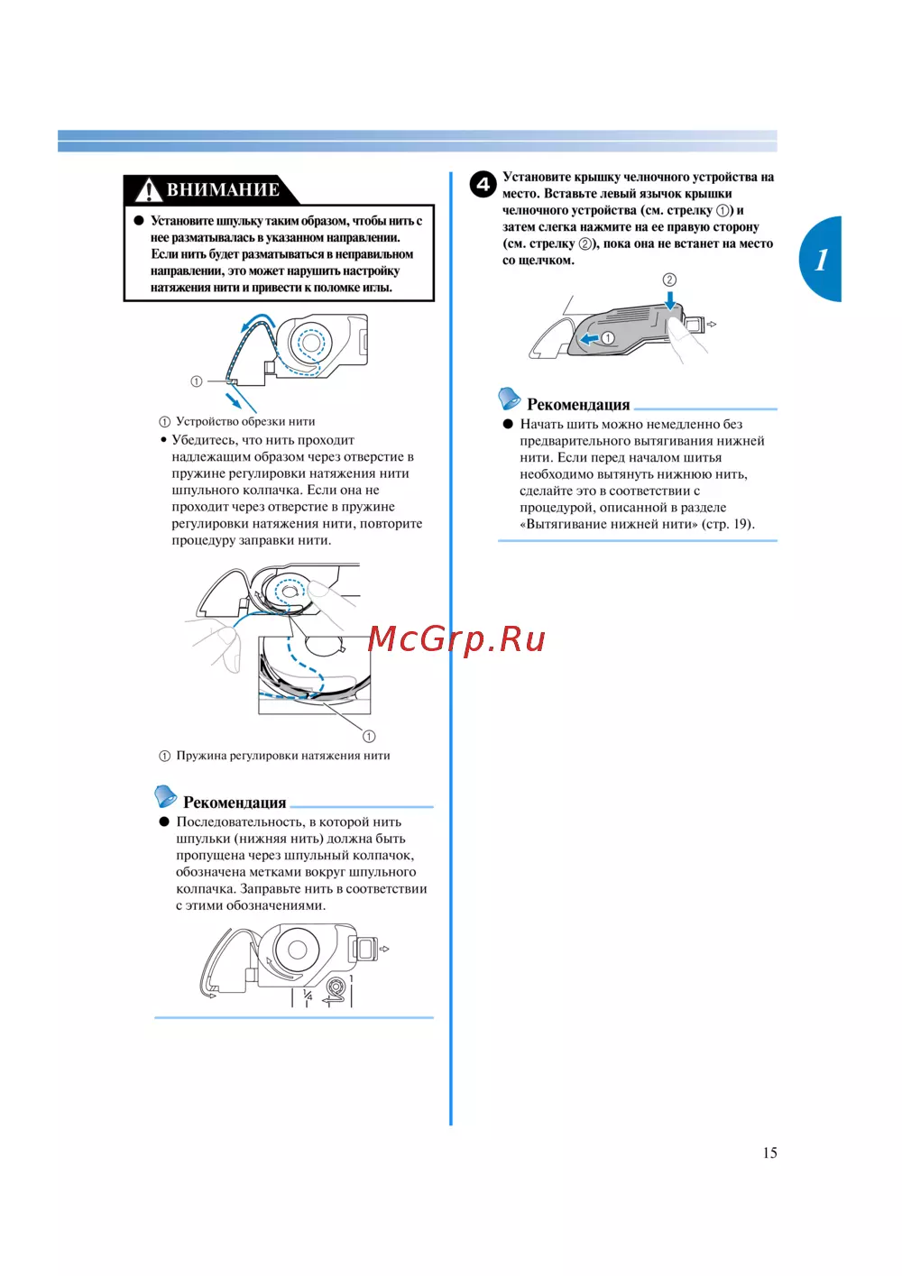 Инструкция по правильной заправке нити швейной машины: как пропустить нить через отверстие пружины, установка шпульки, регулировка натяжения и предупреждения о последствиях неправильной сборки.