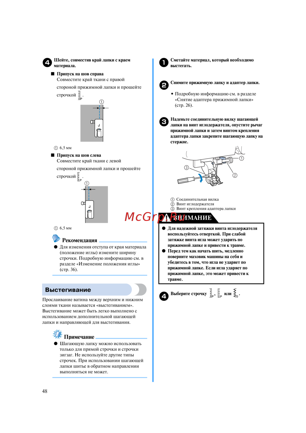 - Усил усилительные стежки не использовать шитье в обратном направлении p.49