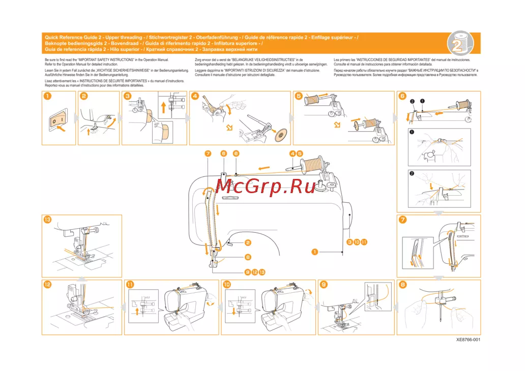 - Quick reference guide 2 upper threading stichwortregister 2 oberfadenführung guide de référence rapide 2 enfilage supérieur beknopte bedieningsgids 2 bovendraad guida di riferimento rapido 2 infilatura superiore guía de referencia rápida 2 hilo superior краткий справочник 2 заправка верхней нити p.2