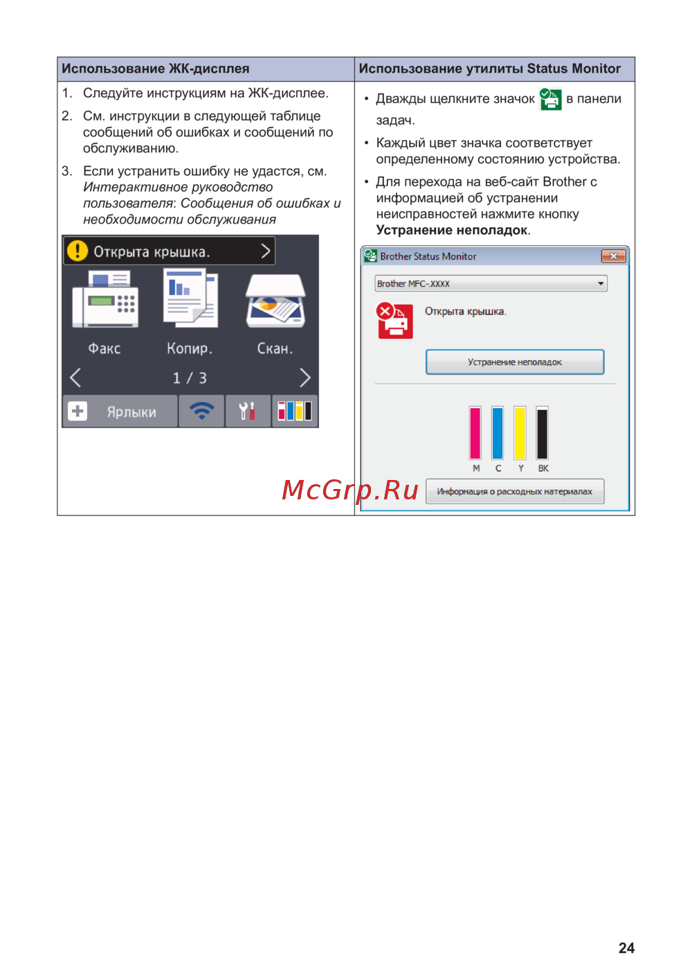 Использование ЖК-дисплея Использование утилиты Status Monitor