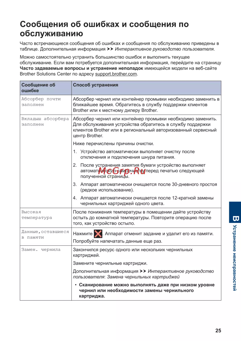 ![Brother MFC-J3530DW [26/39] Сообщения об ошибках и сообщения по обслуживанию](/views2/1261004/page26/bg1a.png)