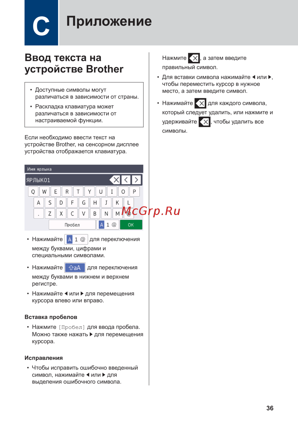 - Ввод текста на устройстве brother p.37