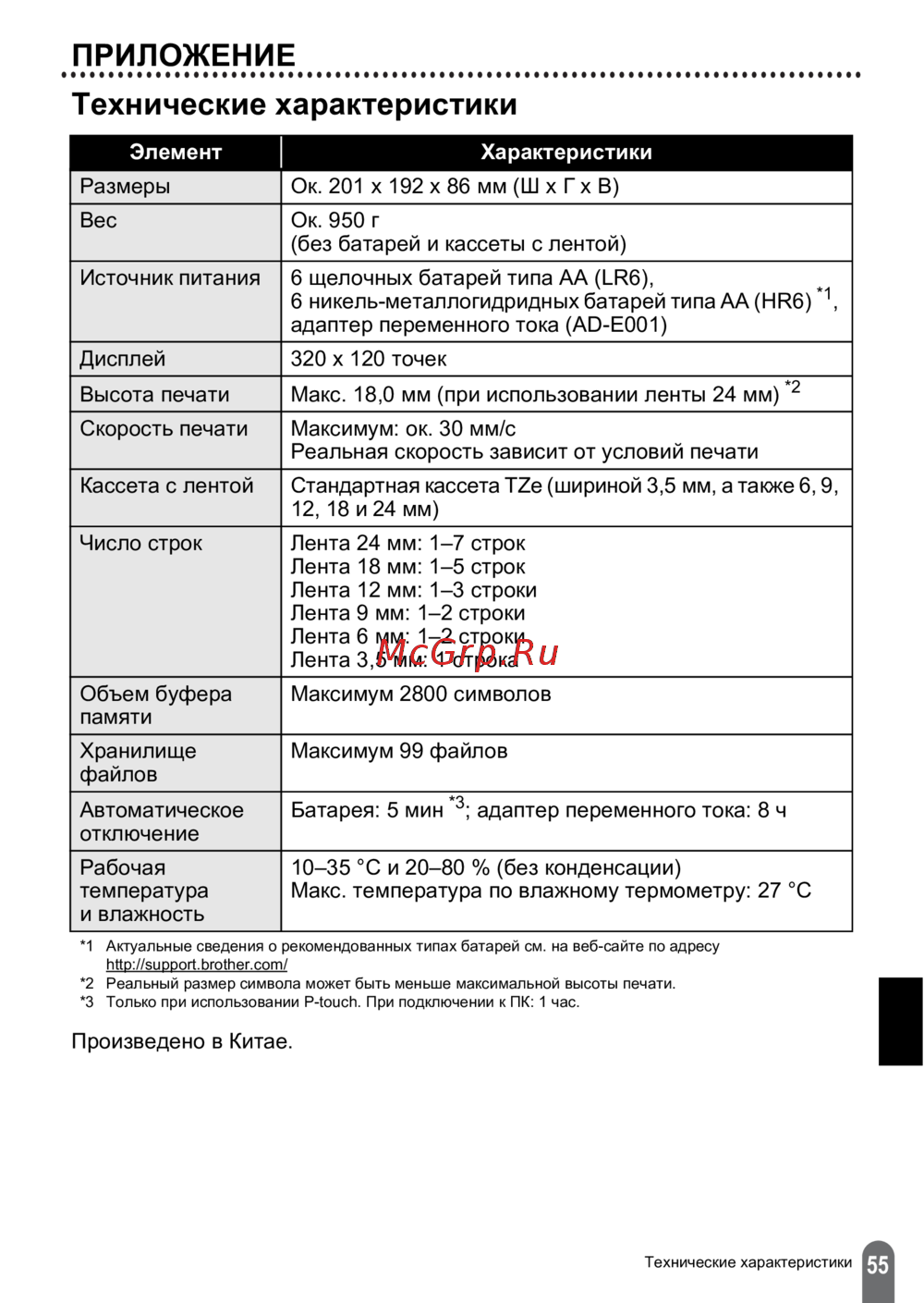 *3 Только при использовании P-touch. При подключении к ПК: 1 час.