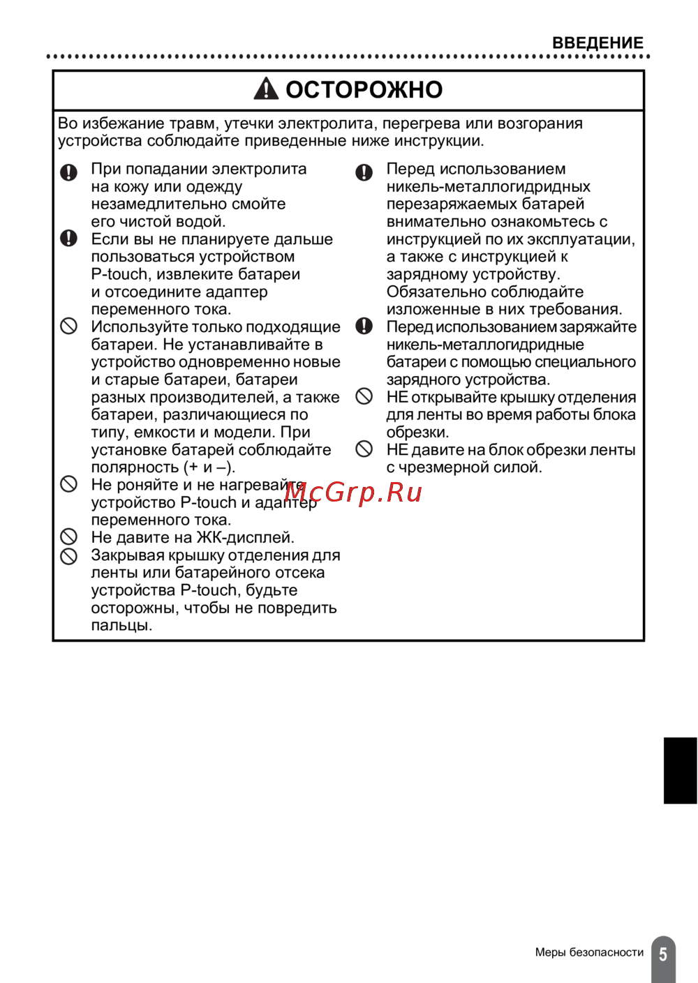 ![Brother PT-D600VP [7/59] Осторожно](/views2/1261011/page7/bg7.png)