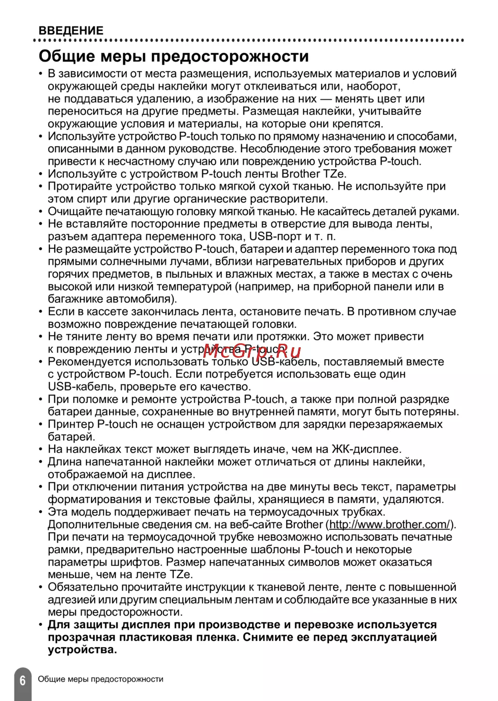 ![Brother PT-D600VP [8/59] Общие меры предосторожности](/views2/1261011/page8/bg8.png)