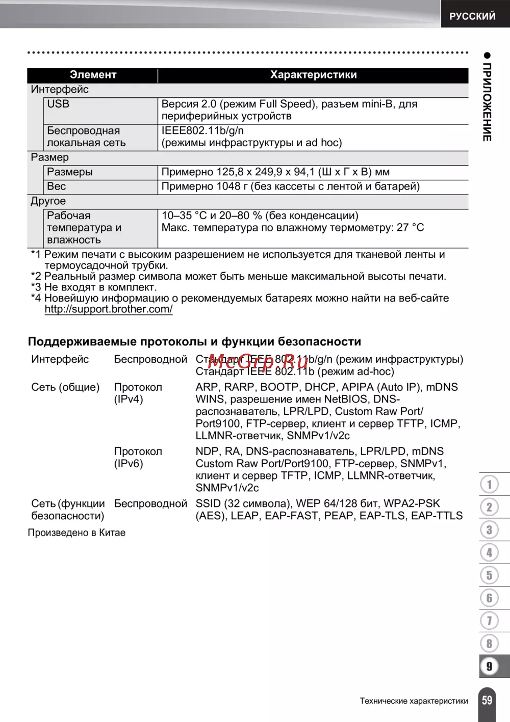 Brother PT-E550WVP [60/67] Поддерживаемые протоколы и функции безопасности