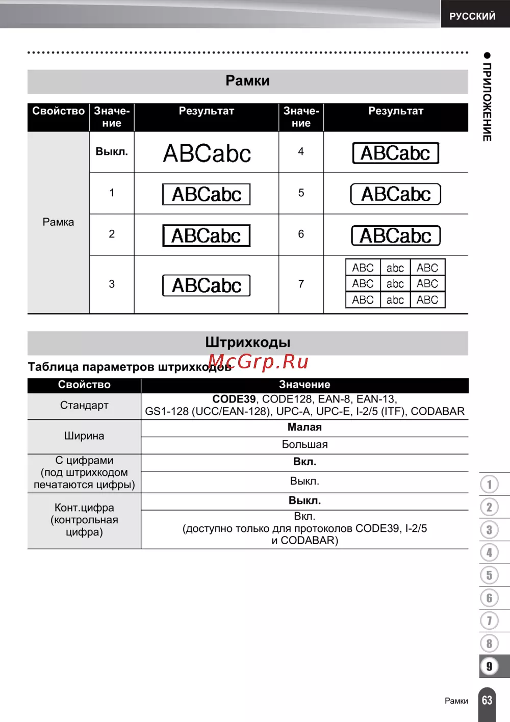 ![Brother PT-E550WVP [64/67] Штрихкоды](/views2/1261012/page64/bg40.png)