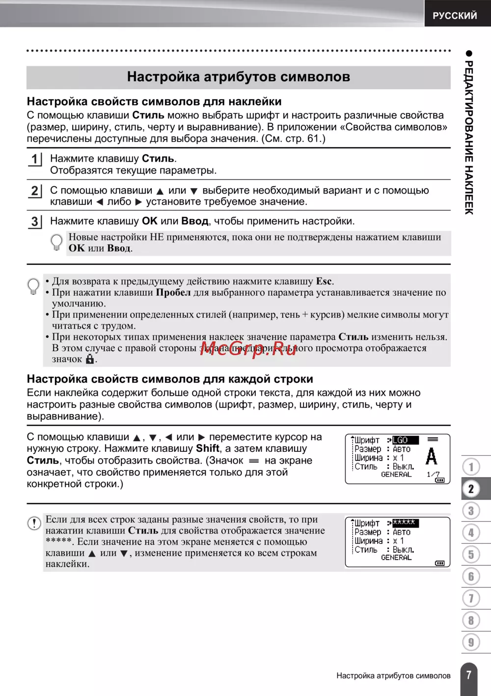 Brother PT-E550WVP — настройка атрибутов символов для наклеек: пошаговое руководство [8/67]