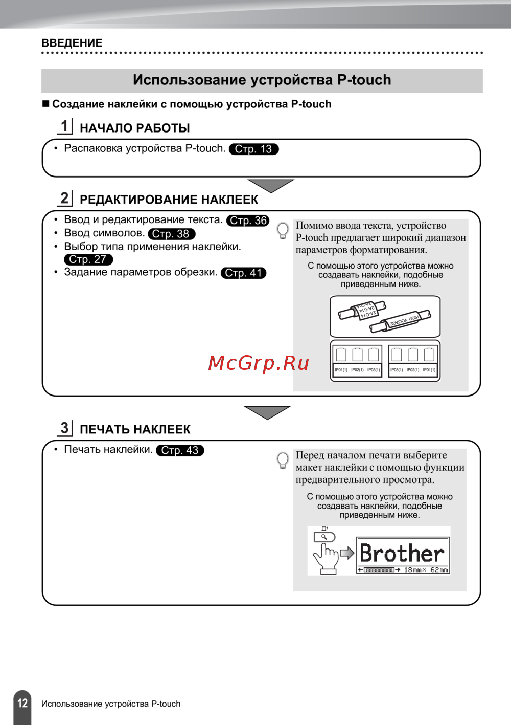 - Использование устройства p touch p.14