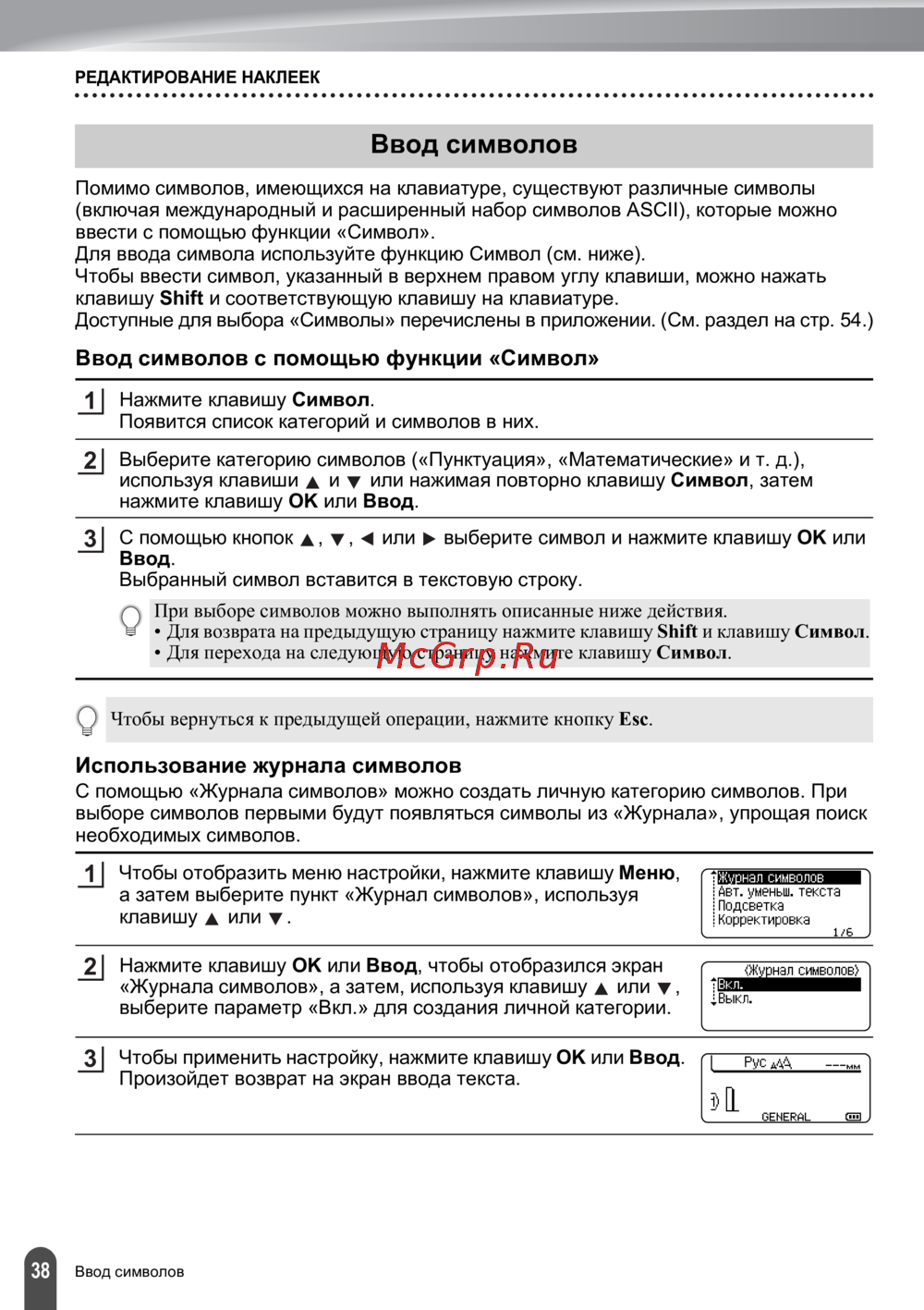 - Использование журнала символов p.40