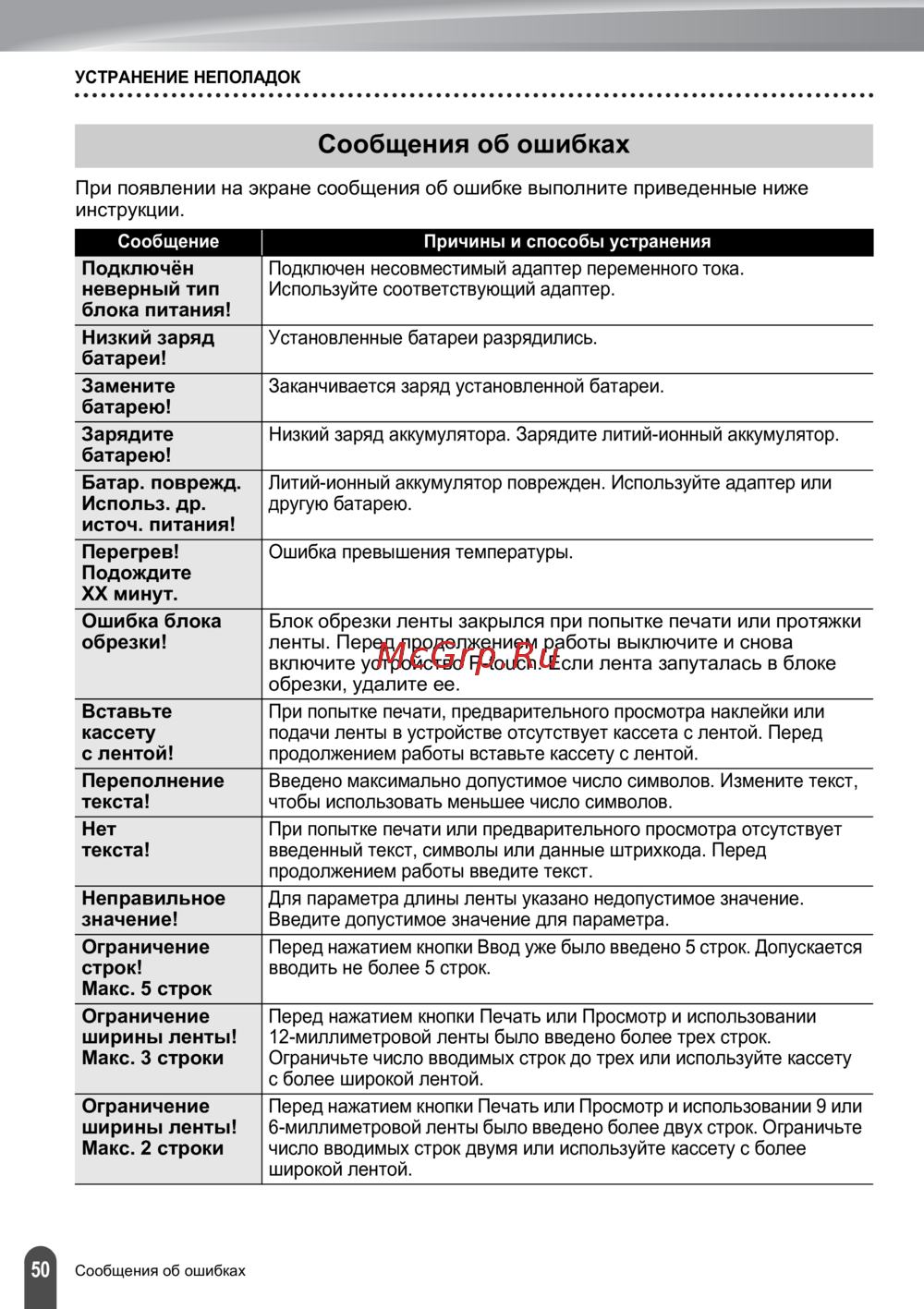 ![Brother PT-E300VP [52/62] Сообщения об ошибках](/views2/1261013/page52/bg34.png)