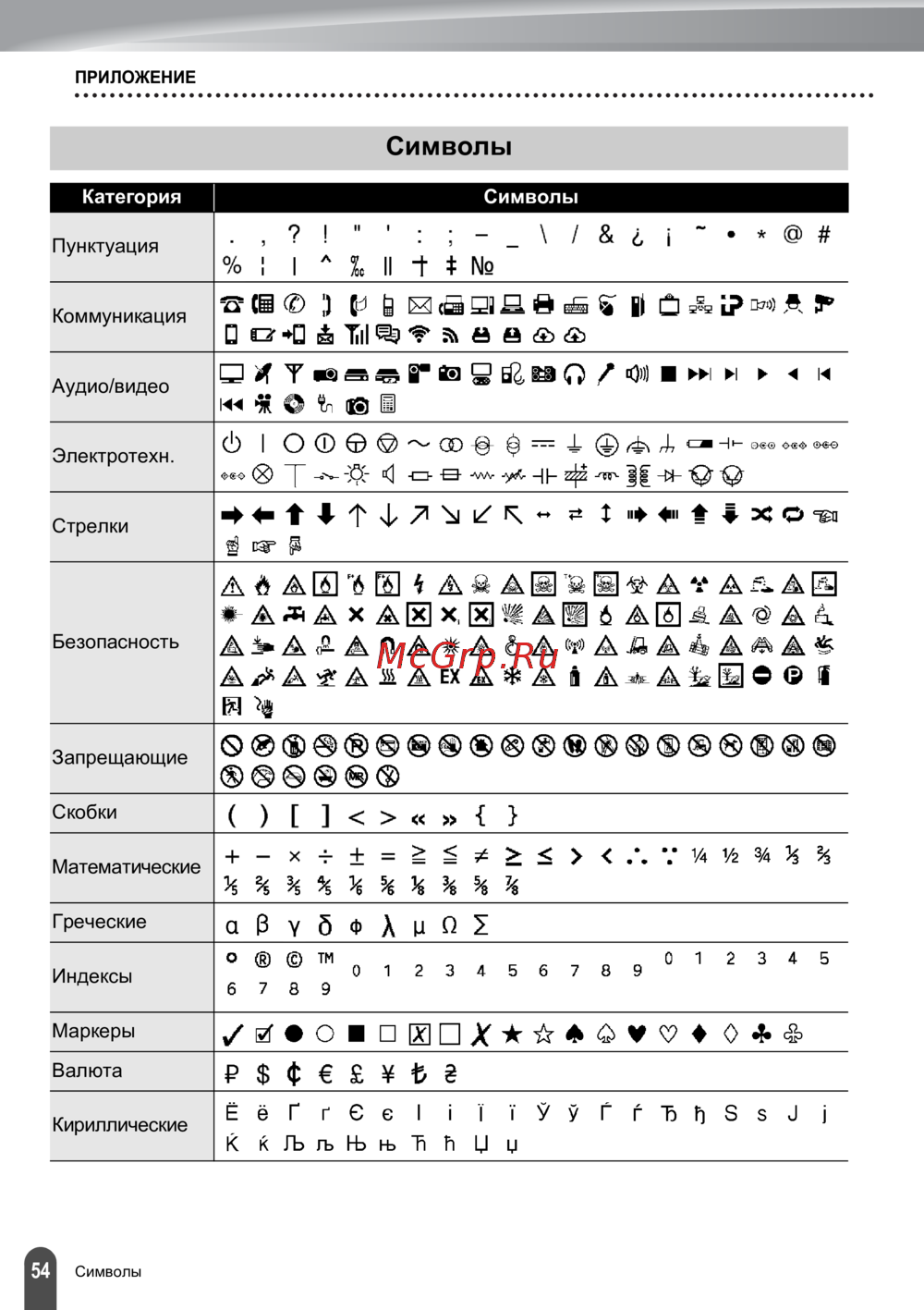 ![Brother PT-E300VP [56/62] Символы](/views2/1261013/page56/bg38.png)