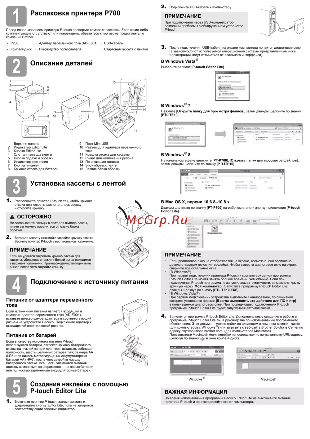Brother PT-P750WИнструкция по эксплуатации -