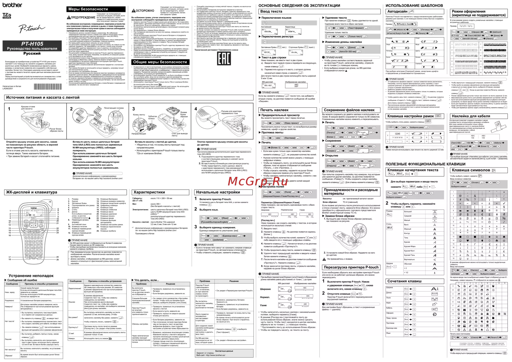Brother PT-H105 Инструкция по эксплуатации онлайн