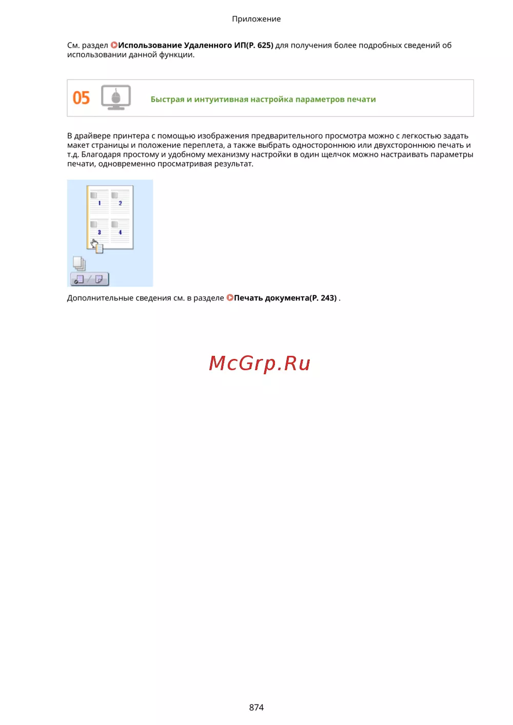Дополнительные сведения см. в разделе Печать документа(P. 243) .