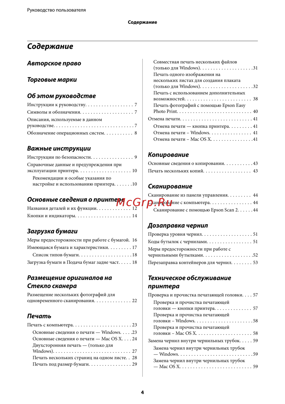 Epson l382 — полное руководство пользователя по настройке и использованию принтера [4/104]