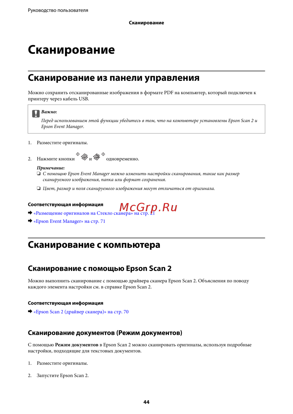 Можно выполнить сканирование с помощью драйвера сканера Epson Scan 2. Объяснения по поводу