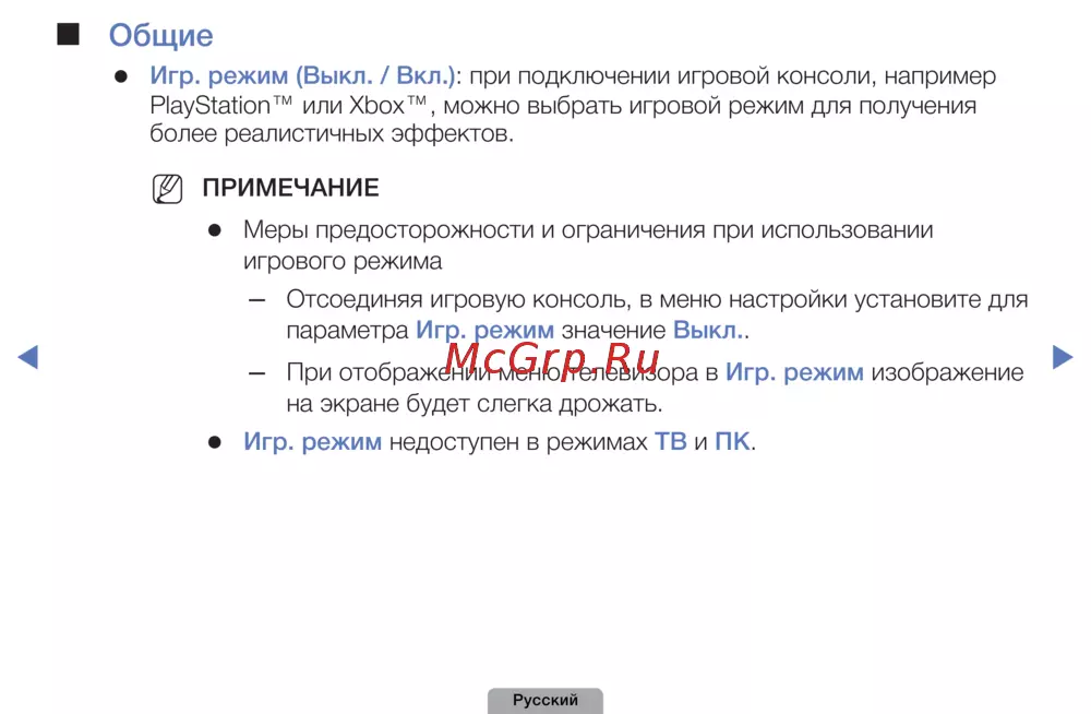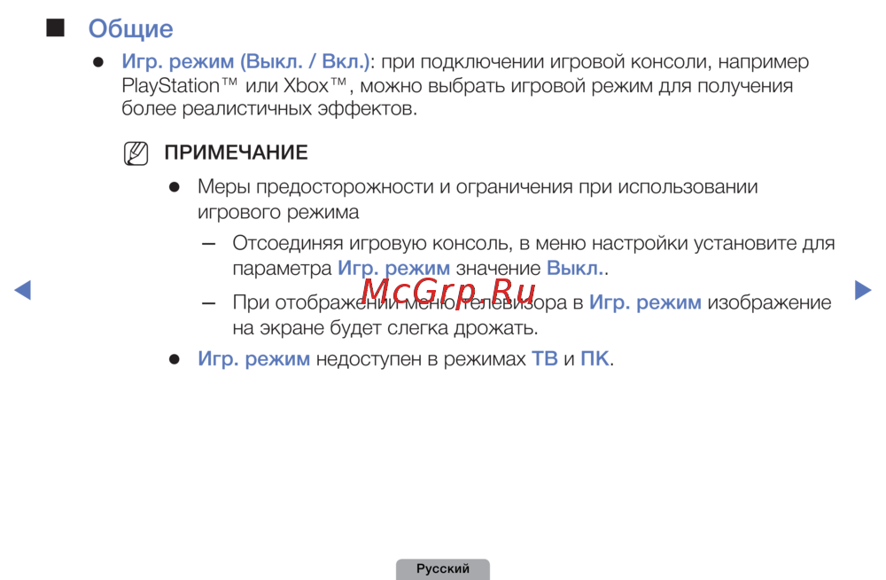 Игр.❑режим недоступен в режимах ТВ и ПК.