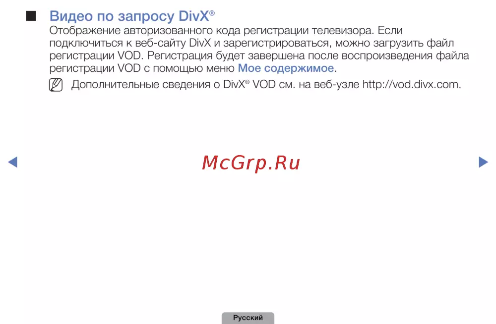 Дополнительные сведения о DivX® VOD см. на веб-узле http://vod.divx.com.