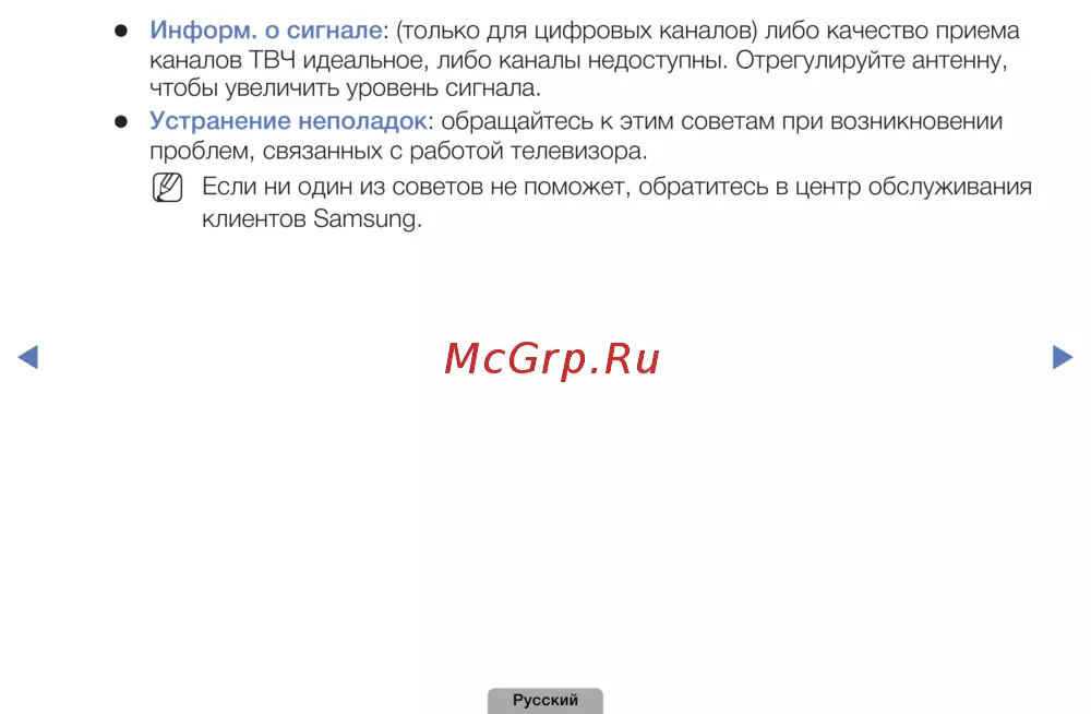 - При возникновении вопросов связанных с работой телевизора сначала просмотрите следующий список если ни один из перечисленных советов не поможет устранить неисправность посетите веб узел www samsung com и выберите пункт поддержка p.172