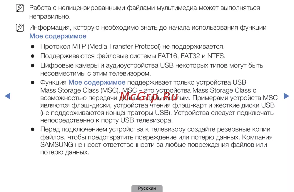 SAMSUNG не несет ответственности за любые повреждения файлов или