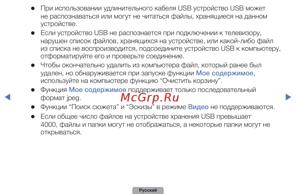 Samsung UE-40 D5000PW — решение проблем с USB-устройствами и форматами файлов [124/191]