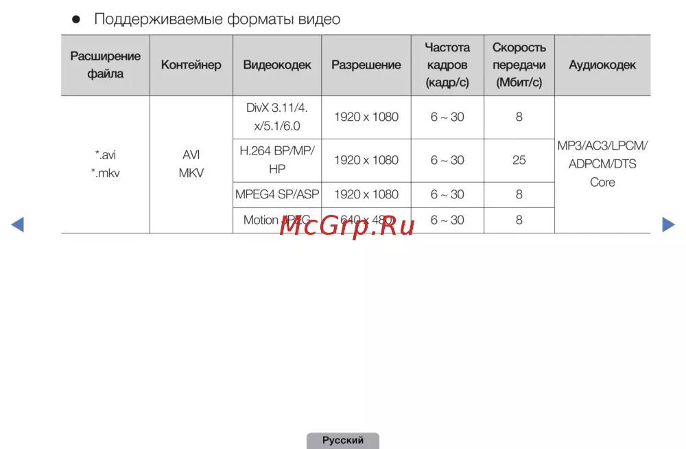 Samsung UE-40 D5000PW [131/191] Поддерживаемые форматы видео