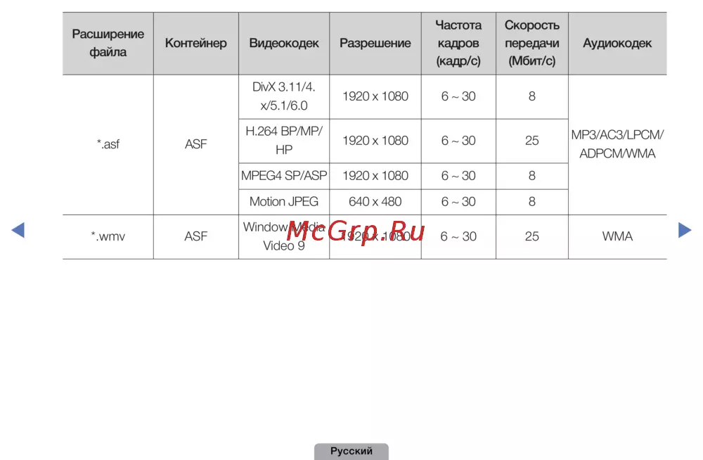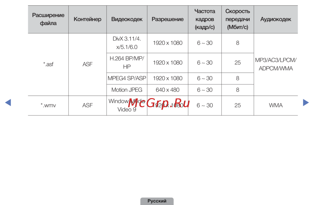 - Поддерживаемые форматы видео p.131