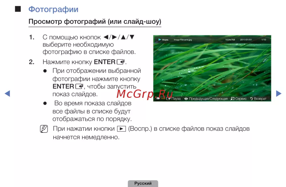 - С помощью кнопок перейдите к нужному файлу а затем нажмите кнопку enter e или воспр начнется воспроизведение файла в зависимости от способа перехода к экрану мое содержимое его вид может отличаться p.128