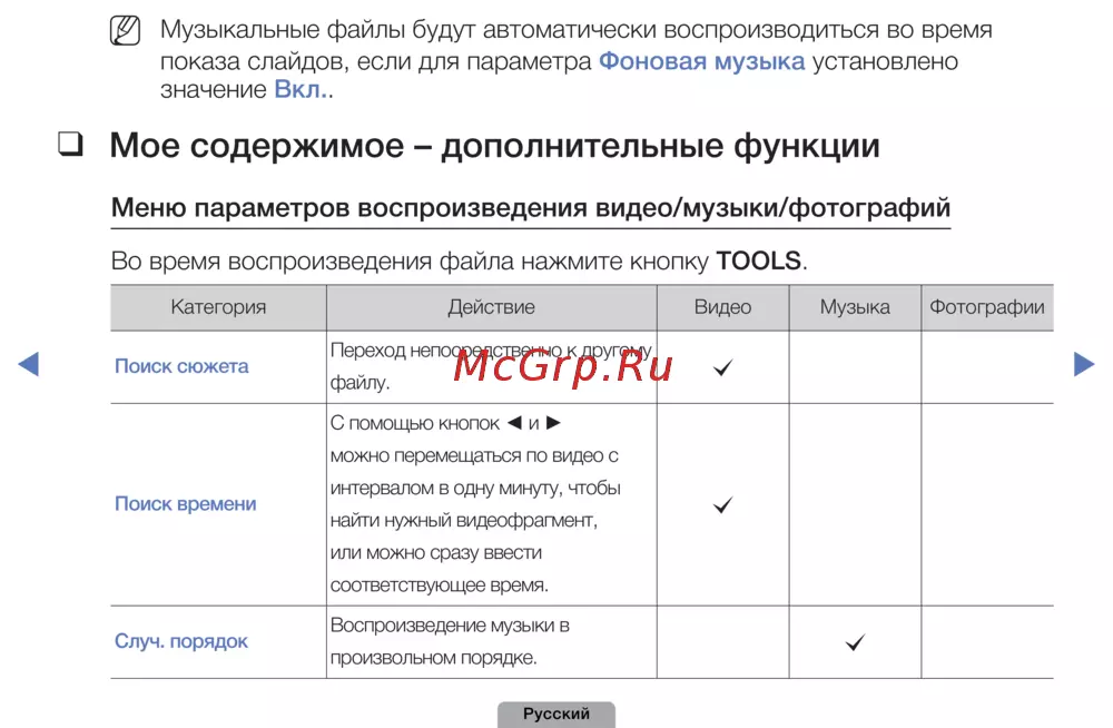 - С помощью кнопок перейдите к нужному файлу а затем нажмите кнопку enter e или воспр начнется воспроизведение файла в зависимости от способа перехода к экрану мое содержимое его вид может отличаться p.128