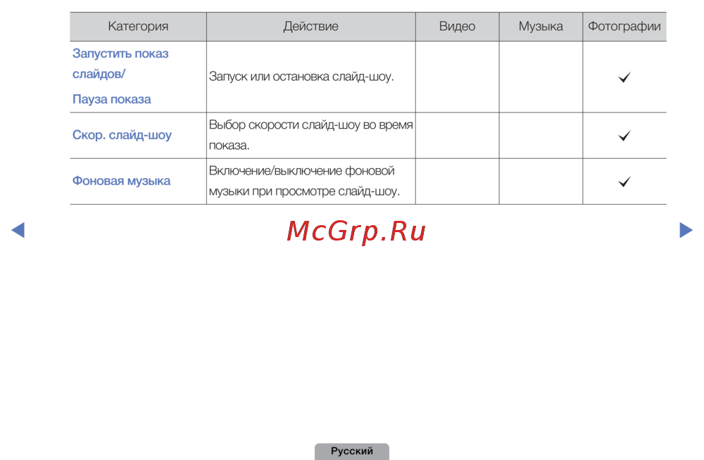 - Показа слайдов если для параметра фоновая музыка установлено значение вкл p.140
