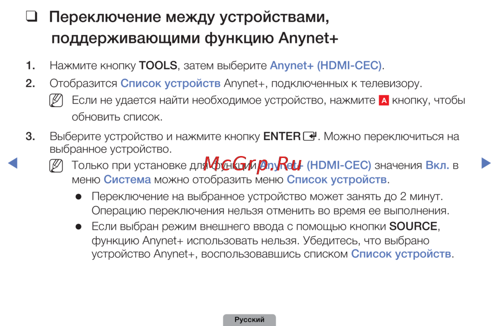 поддерживающими❑функцию❑Anynet+