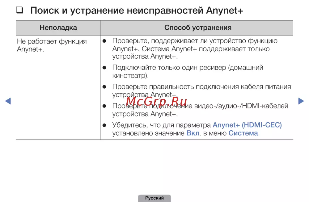 Поиск❑и❑устранение❑неисправностей❑Anynet+