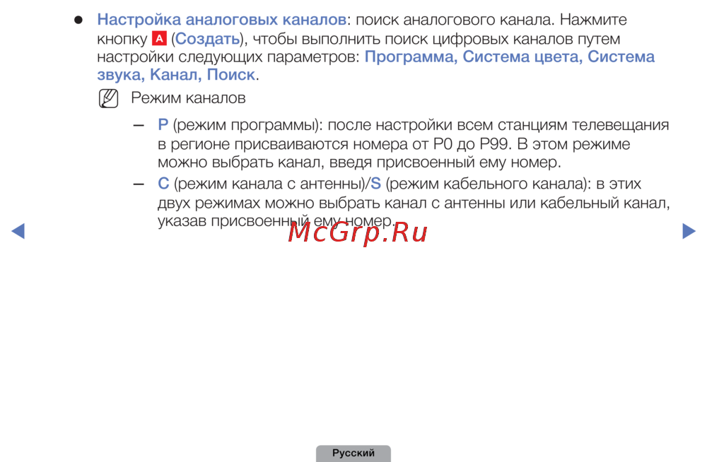 Настройка❑аналоговых❑каналов: поиск аналогового канала. Нажмите